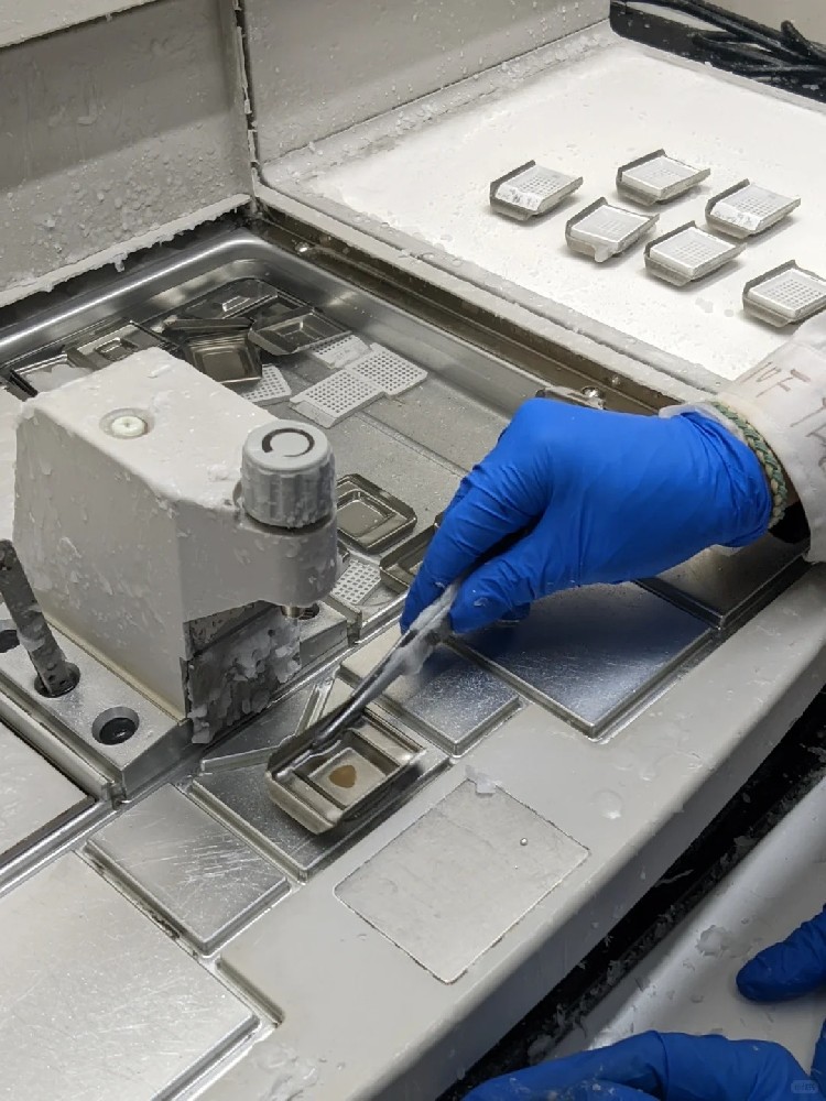 1、取材:新鲜组织固定于10%中性福尔马林24h以上。将组织从固定液取出在通风橱内用手术刀将目的部位组织修平整,将修切好的组织放入写有对应编号的脱水盒内。2、脱水:将脱水盒放进吊篮里于脱水机内依次梯度酒精进行···