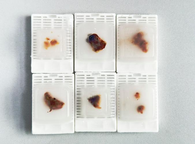 4、取材切面要平整,厚度不易超过2mm,否则脱水效果不能保证,